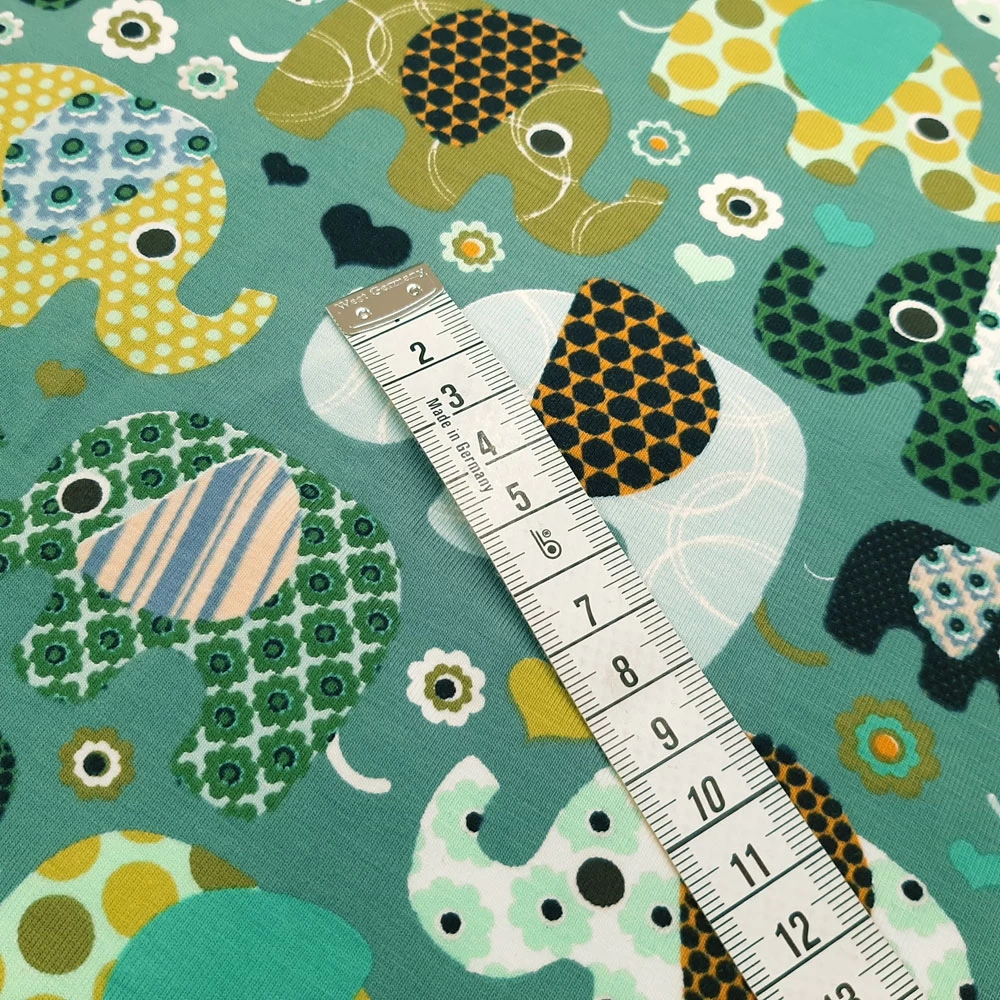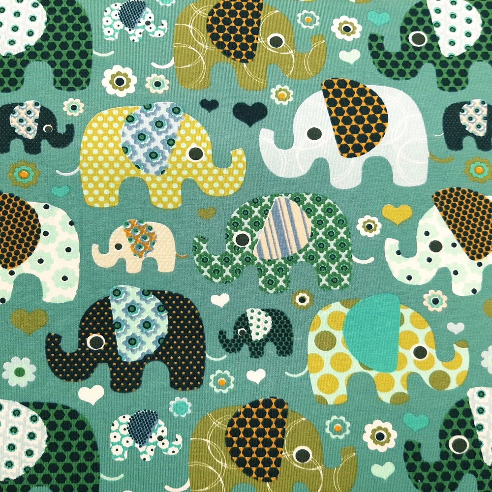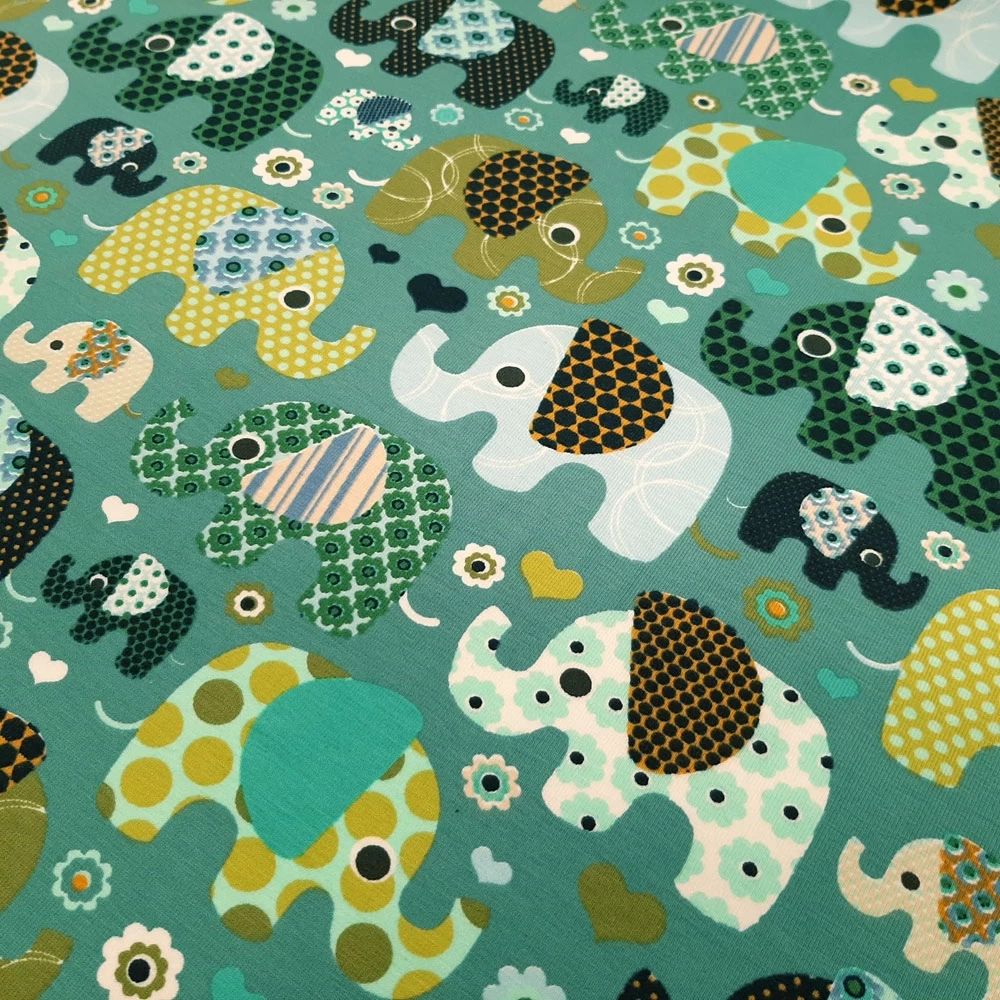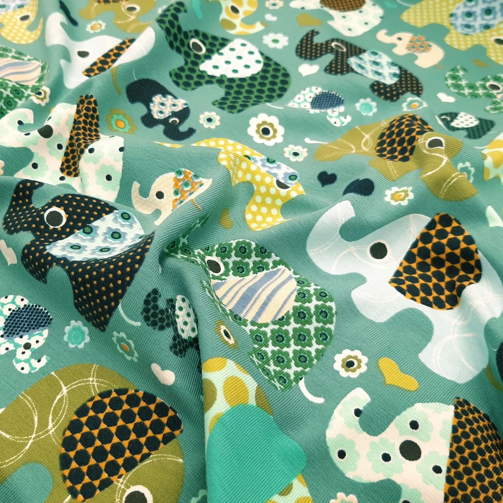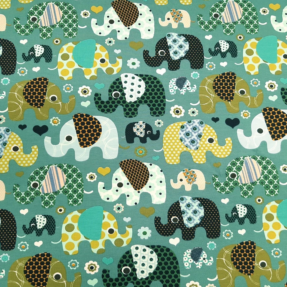 Elastic cotton jersey with elephant print