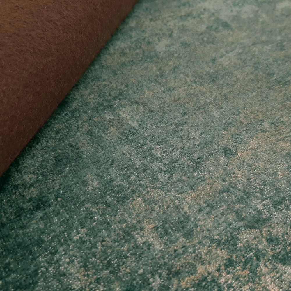- The front side of the upholstery fabric has a light velour / velvet look; the back side has a brown fleece