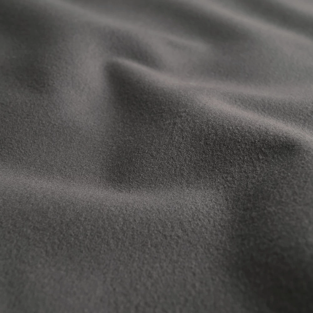 This slightly lighter softshell fabric is ideal for thinner softshell jackets or pullovers. The microfleece side insulates and warms on cooler days