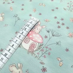 • Cute motif with bunnies, leaves, flowers and mushrooms